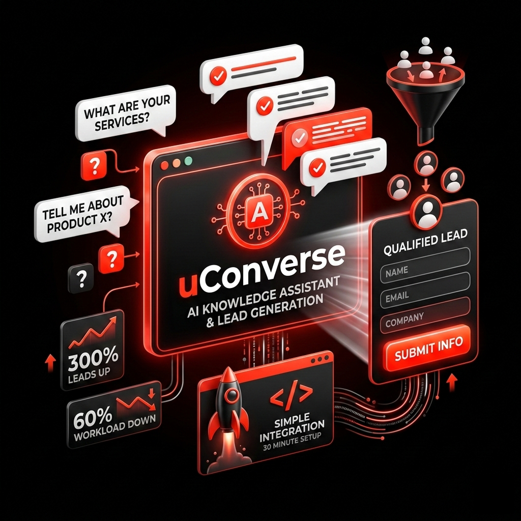 Your AI-powered knowledge assistant and lead generation tool. uConverse engages visitors with intelligent conversations about your business, services, and expertise, answering questions in real-time while capturing qualified leads with user consent.